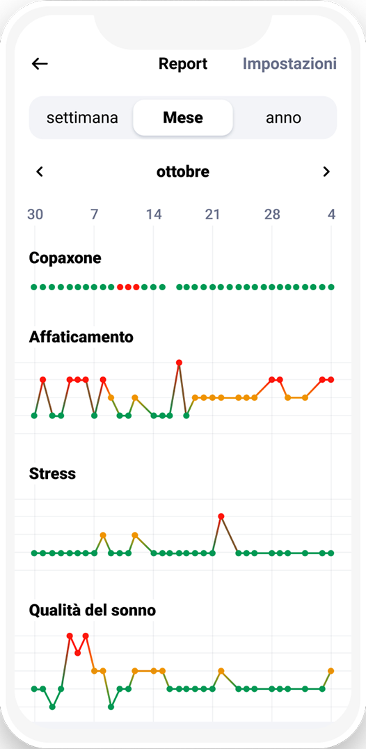 I pazienti possono annotare i dati relativi al loro stato di salute sulla base di diversi indicatori: