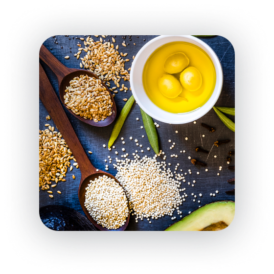 Sono rappresentati principalmente da omega-6 (ω6) e omega-3 (ω3). Alcuni tipi di omega-3 e omega-6 non sono sintetizzati dall’organismo e devono essere forniti dalla dieta in quantità piccole e equivalenti. In realtà, le abitudini alimentari occidentali promuovono spesso l’assunzione di omega-6 su omega-3 (ω6/ω3 rapporti variabili da 6 a 15). Una dieta troppo ricca di omega-6 non è raccomandata poiché è associata a un maggior rischio di malattie cardiovascolari o infiammatorie. Una maggiore assunzione di omega-3 aiuta quindi a ripristinare l’equilibrio omega-6/omega-3.